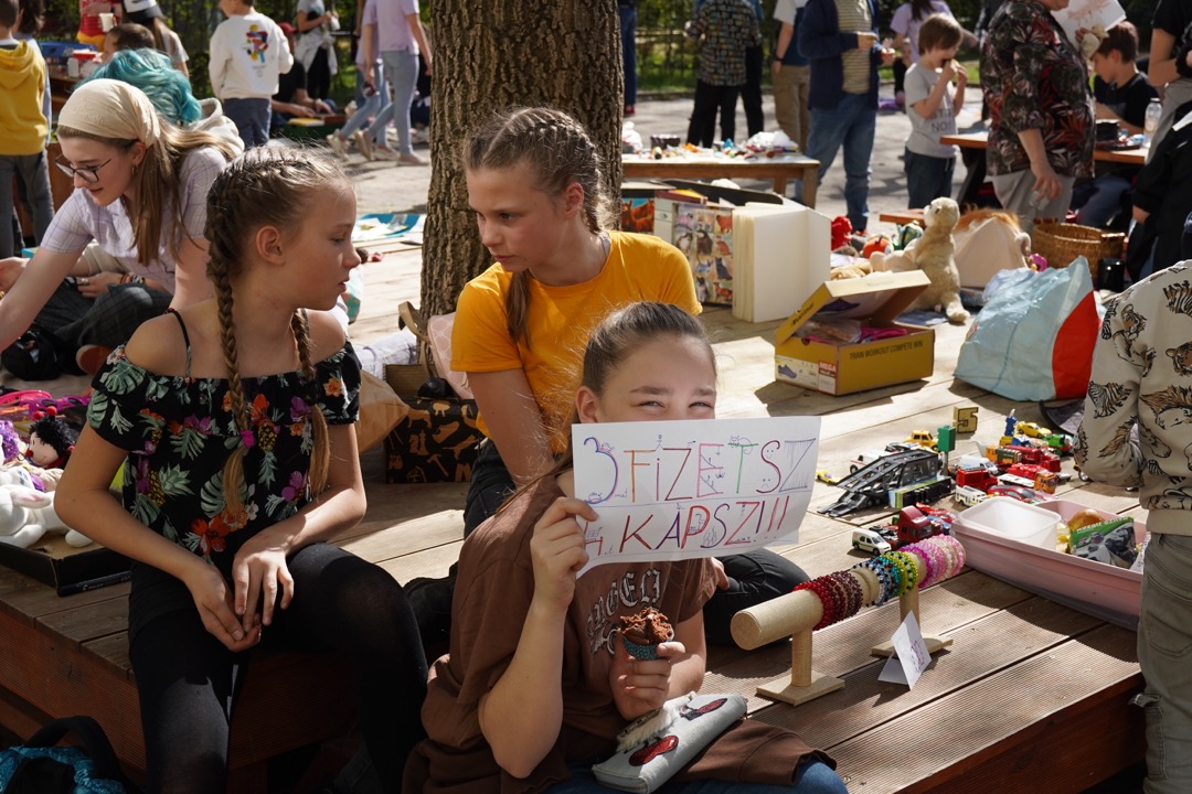 A tavaszi szünet előtt egy szép napsütéses tavaszi csütörtökön tartottuk a bolhapiacot az udvaron. Örültünk, hogy idén végre jöhettek rokonok, barátok, és üzlettársak is. A megunt játékok, társasok, könyvek, plüssök, puzzle, focis kártyák, pónik és egyéb kincsek gazdát cseréltek. Köszönjük, hogy bolhát nem árultatok, de hoztatok finom sütiket és limonádét! Az udvar zsúfolt volt a sok-sok árustól és zajos a vidám beszélgetéstől, alkudozástól. Mindenki elégedetten tért haza zsákmányaival.