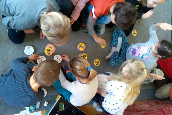 A kalligráfia szakkörön tollsercegés, pacák, nevetés, izgalmas betűtípusok, gyertyafény, zene, jó hangulat volt. A gyerekekkel a gyönyörű kézírás alapjait gyakoroltuk, lassan, megfontoltan formáltuk a betűket. A foglalkozáson mindenki elsajátíthatta a mártogatós toll használatát, a díszes betűk formálását. A horgolás szakkörön többen megpróbálkoztak az egyenes fonalból valami szépet varázsolni. Nagy fiúk és kislányok együtt munkálkodtak. Volt, aki láncszemekből készült karkötőt horgolt. Többen nekikezdtek egy virág elkészítésének. Kiderült, hogy ez nem is olyan könnyű. Néhány gyereknek összecsavarodott az alkotása a munka során, de mivel sok munkája volt benne, a lebontás helyett egy absztrakt szabad horgolással készült tárgyat alkotott. Többen úgy belemerültek, hogy nem csak egy szakköridőben dolgoztak serényen. Jól esett elmélyülten alkotni. A társasjáték szakkörre a csapatok szinte mindig együtt érkeztek és nem véletlenszerűen alakultak. Az első körben a 4. és az 1. osztállyal Activiy-t játszottunk, a másodikban Dobble és Activity volt a program a nyolcadikosokkal, a harmadik szakkörön pedig az ötödikesekkel játszottunk a Bang és a SET kártyajátékokkal. A Zöld osztályban 2017-es naptárakat lehetett készíteni. Három féle minta közül választhattak a gyerekek. Lehetett térbelit, egyszerű színezőst és saját tervezésű naptárat gyártani, hogy mindenki tájékozott legyen az idő múlásáról 2017-ben is. Népszerű szakkör volt, mind a három foglalkozáson teltházasak voltunk. A kreatív íráson mesekockákkal dobtunk és azok segítségével alkottunk történetet. Volt, aki haikut írt, volt, aki hosszú történetet talált ki. Gyerekek is sokan jöttek, de még egy felnőtt is, a kuratórium egyik tagja is alkotásba kezdett.